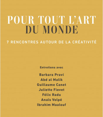 Couverture monochrome un peu tristounette et surtout un titre bicolore en blanc et noir où le noir plus dense accentue 'du monde' pendant que le blanc faible gomme 'l'art'. Le sous-titre en blanc :7 rencontres autour de la créativité et en noir le no...