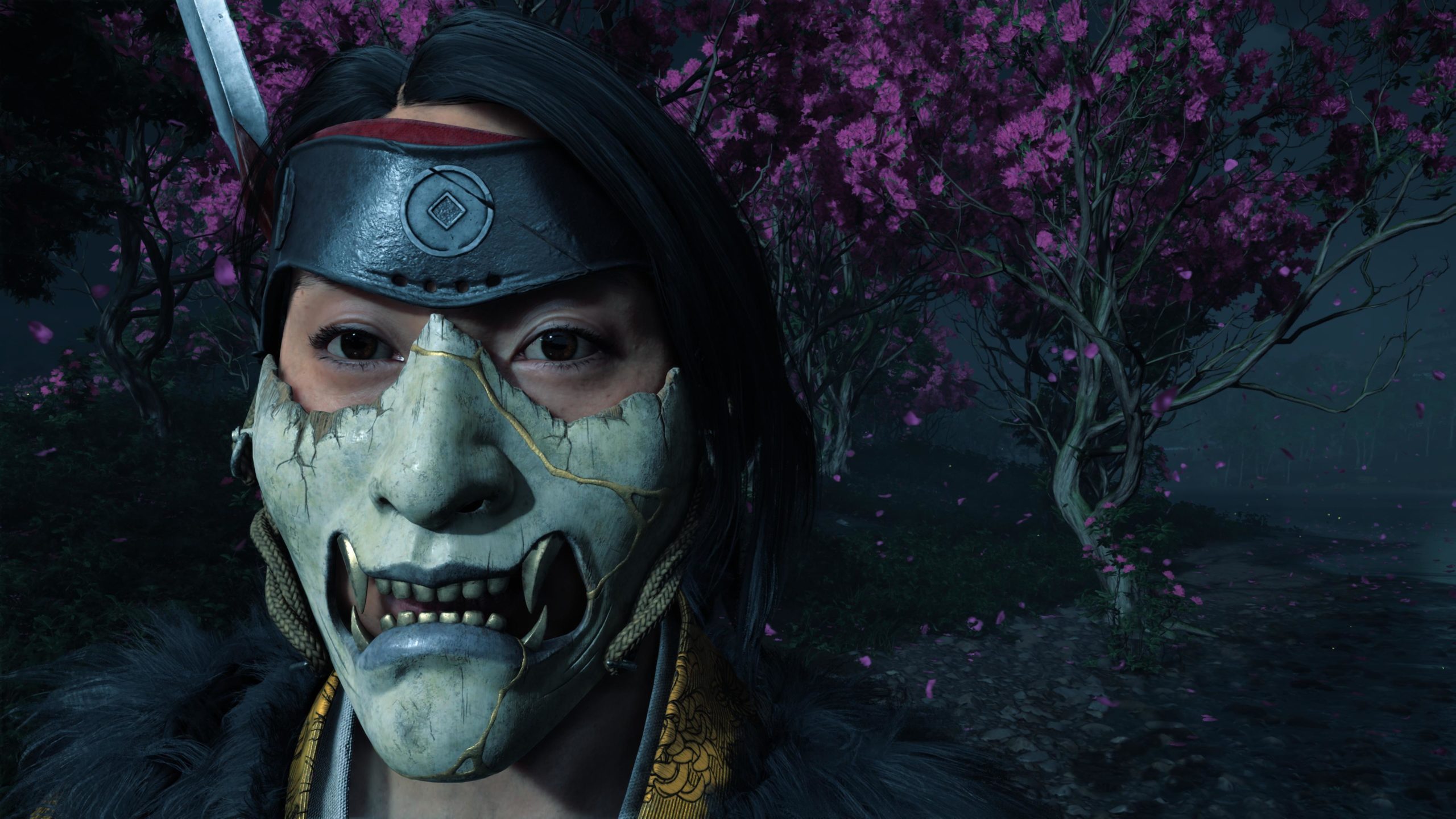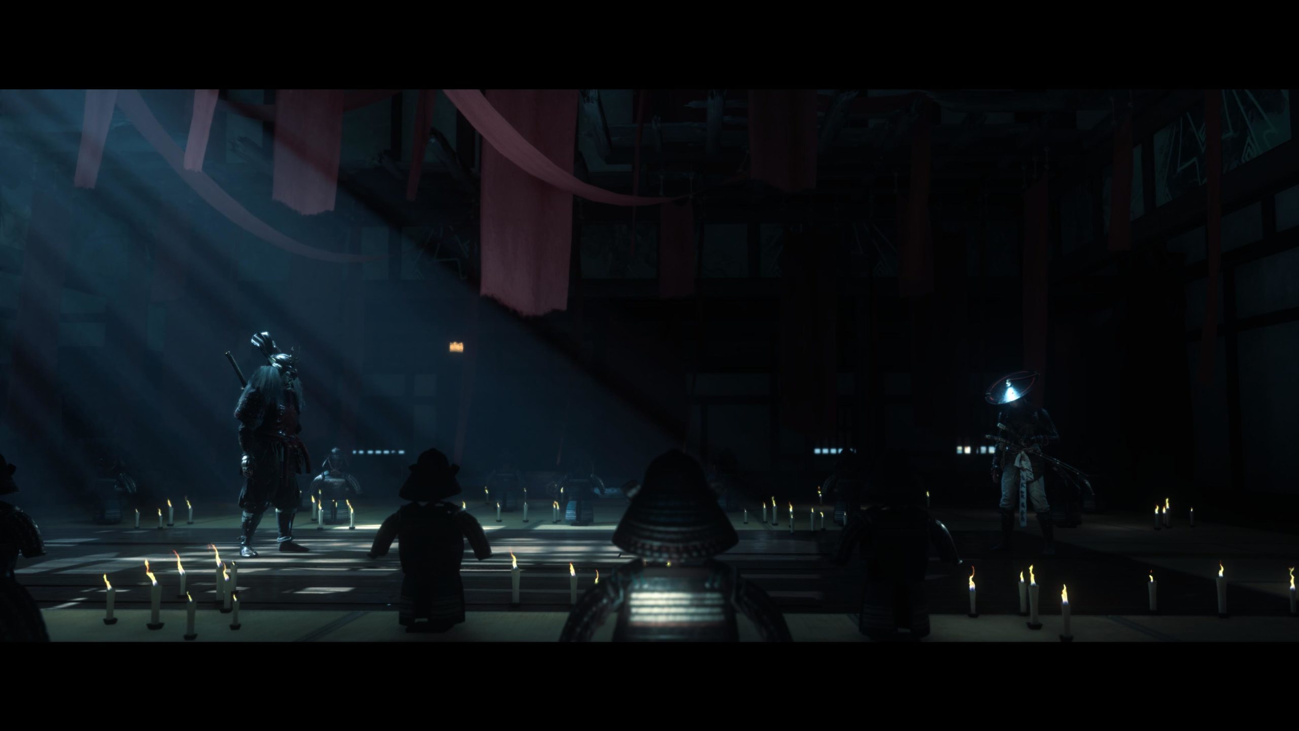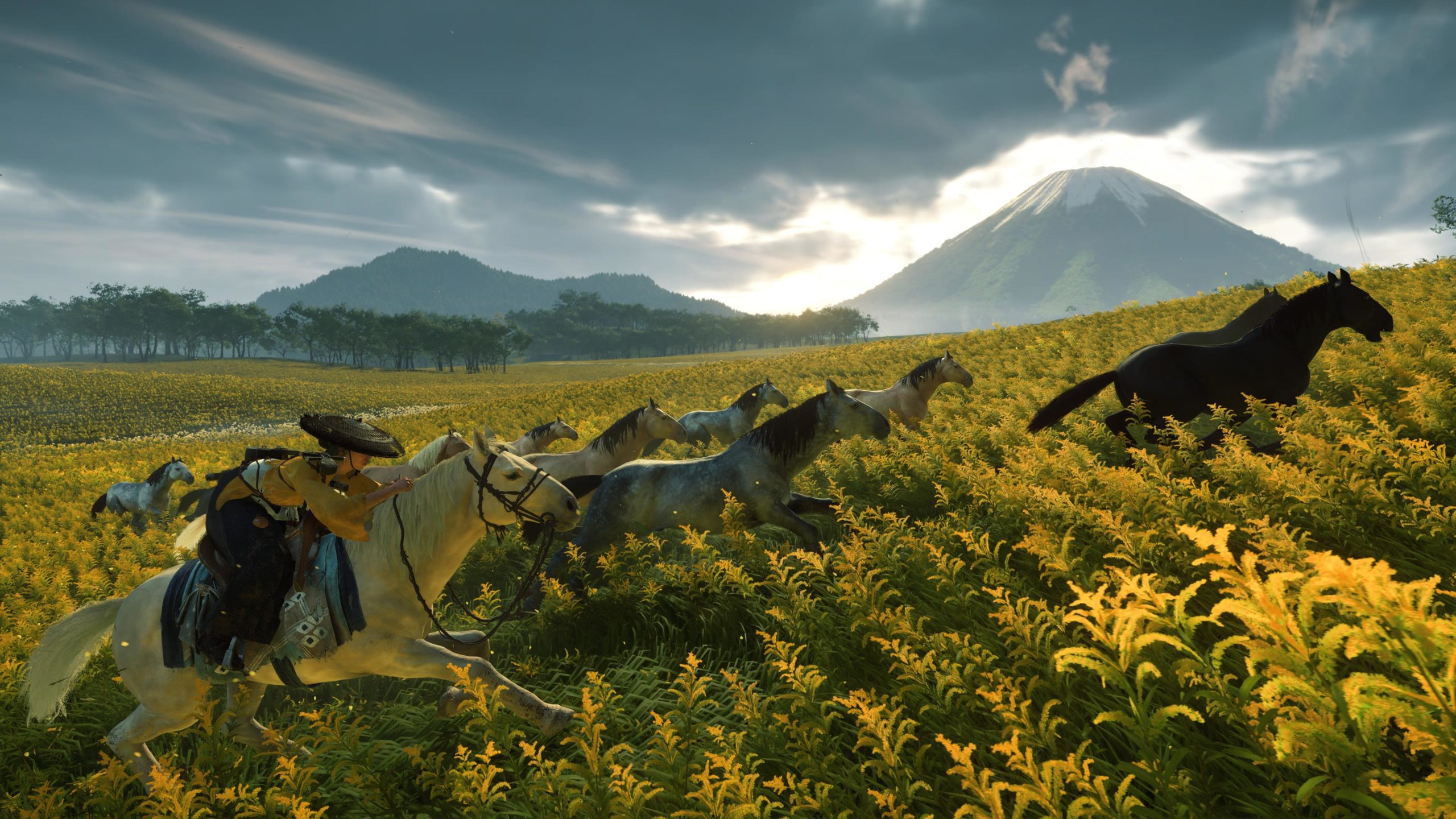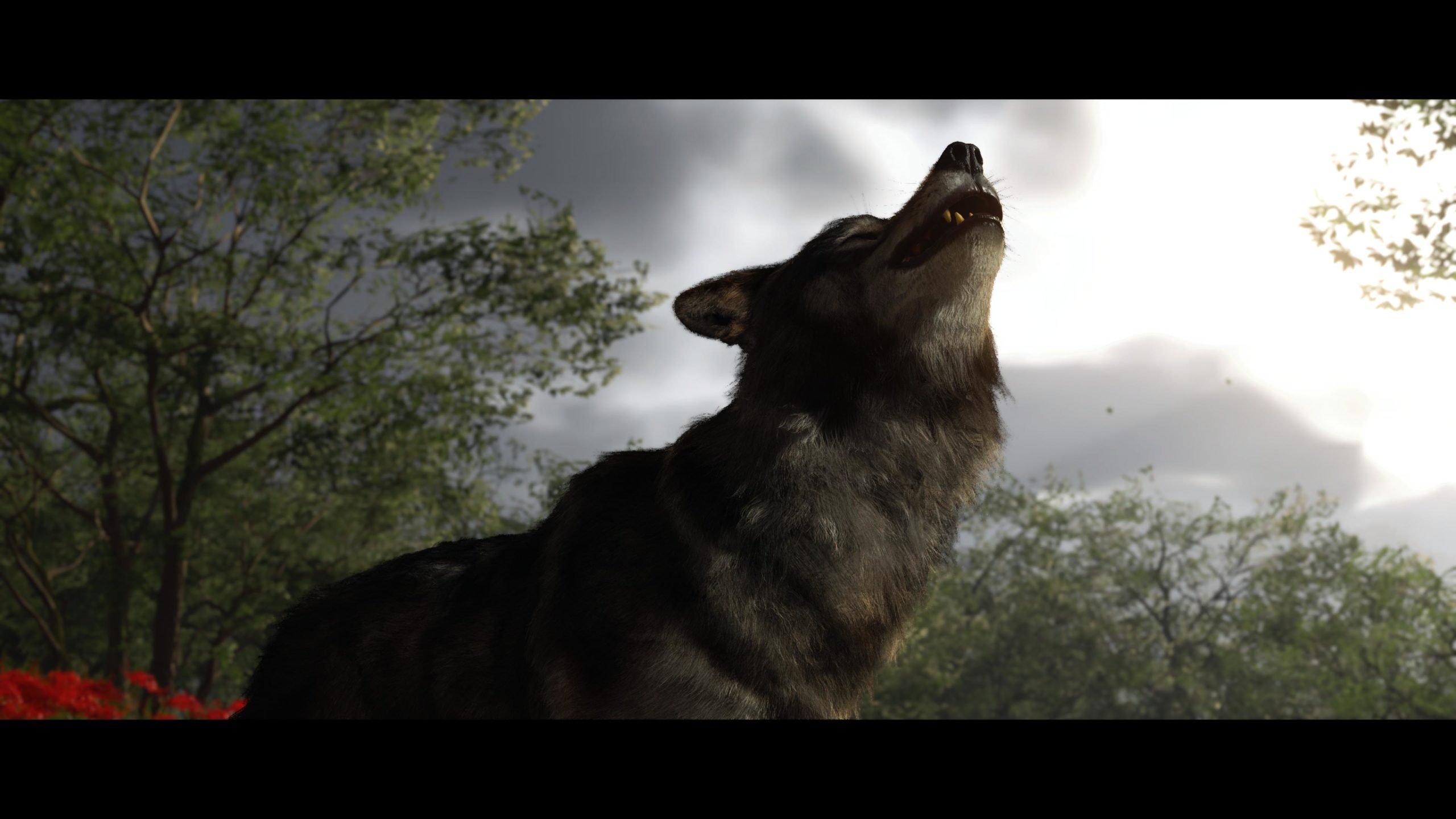 Artistiquement et techniquement, Ghost of Yōtei est magnifique. Que se doit la modélisation des personnages, très détaillé pour les principaux, un peu moins pour les secondaires et encore moins pour les tertiaires, ou les environnements qui sont tout bonnement grandioses et varié font du titre un très, très joli jeu. C’est aussi le festival de particules. Les feuilles, les pétales de fleurs, les flames ou la neige le jeu reste dans un éternel mouvement apaisant et berçant. L’herbe et les arbres dansent au rythme du vent avec grâce. Un gros travail sur les animations est aussi à relever. Atsu sort ses sabres avec justesse. La chorégraphie dans les combats est encore une fois sublimée par le travail des artistes. Le souci du détail est à l’œuvre. L’atmosphère du jeu est toujours aussi réussie avec le changement climatique dynamique. Les nuages volumétriques couvrent le mont Yōtei de la meilleure des manières. La gestion de la lumière est soignée. C’est magnifique. On regrettera un peu le manque d’interaction avec le décor. On peut faire de jolies balafres dans les hautes herbes et casser certains objets de temps à autre, mais beaucoup d’assets restes inertes à nos actions.
