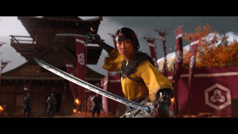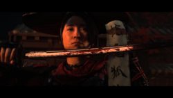 Atsu est un personnage qui marquera moins les esprits comme a pu faire Jin Sakai. Elle est beaucoup plus froide et moins sympathique que lui. Alors elle est cash et sans chichi. Elle n’a pas cette profondeur qu’avait Jin avec ses cas de conscience sur l’honneur et la vengeance. Elle n’hésite pas à tuer des ennemis par dizaine pour atteindre son but. Et ça c’est bien. Le jeu ne manque pas d’action. Mais un peu de nuance et de sympathie, voir même d’humour dans les dialogues aurait été le bienvenu. Là, elle est trop souvent désagréable et un peu antipathique. C’est bien c’est une femme forte, dangereuse, énervée qui ne répond de personne et qui n’a besoin de personne. OK. Mais bon, ça n’empêche pas un petit sourire de temps à autre. C’est dommage parce que sinon c’est un personnage agréable à jouer et incarner. L’histoire, bien que pas bien original, est plutôt bonne et bien écrite globalement, mise à part quelques choix moraux d’Atsu à certains moments clés qui posent interrogation. On se laisse porter par la narration et on a envie d’affronter chacun des six de Yōtei pour des confrontations épiques. Et ça ne déçoit pas. La mise en scène et les cinématiques sont excellentes. Les six de Yōtei sont des ordures de la première heure que l’on a envie d’occire.