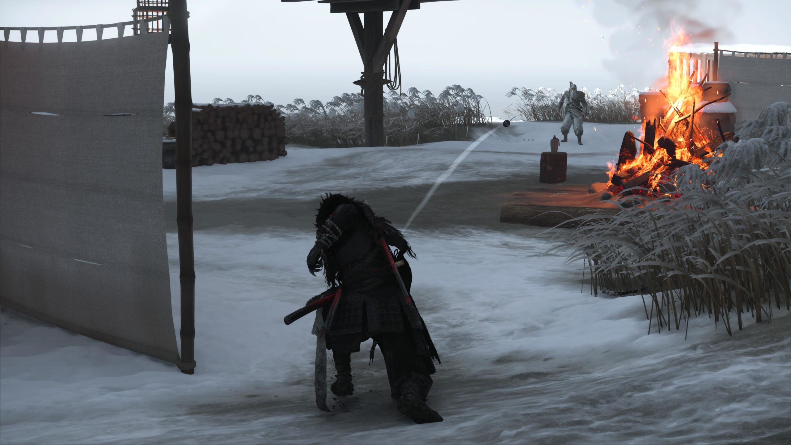 Atsu peut parfois aussi ramasser des armes à terre pour les lancer et transpercer un ennemi d’un seul coup. Très pratique lors des combats contre plusieurs adversaires. C’est un peu cheaté mais tellement utile lors de grosses escarmouches. Atsu peut aussi enflammer ses armes et conférer des dégâts de feu.