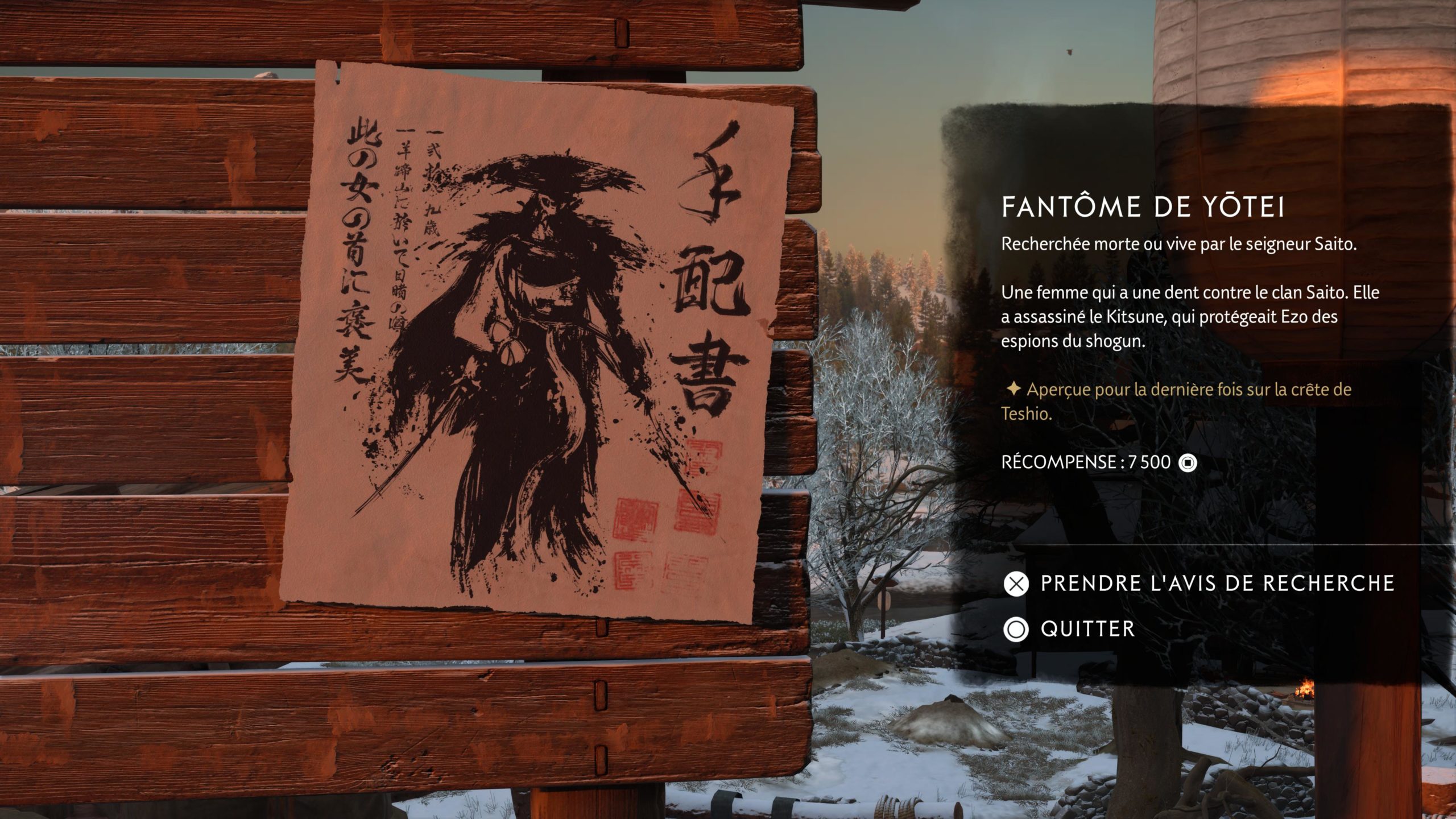 Le loot est toujours très important dans Ghost of Yōtei. Il faut fouiller les maisons, les camps et chaque recoin pour récupérer le précieux loot qui permet d’améliorer ses armes, ses bombes et kunai, etc. auprès des marchands. Ce n’est peut-être qu’une impression, mais j’ai l’impression qu’il y a moins de loot différent qu’auparavant et que l’on passe moins de temps à le chercher pour laisser plus de place à la vraie exploration et à l’action. Mais il reste très important. A cheval, il est conseillé de ramasser les pousses de jeune bambou et les fleurs pour ne jamais en manquer lorsque l’on en a besoin. Perso, je n’ai jamais manqué de ressource dans le jeu car en le faisant petit à petit, mais sans l’éviter, on a toujours ce qu’il faut. Pour l’argent c’est pareil, il faut faire les quêtes de chasseuse de prime pour se remplir les poches.
