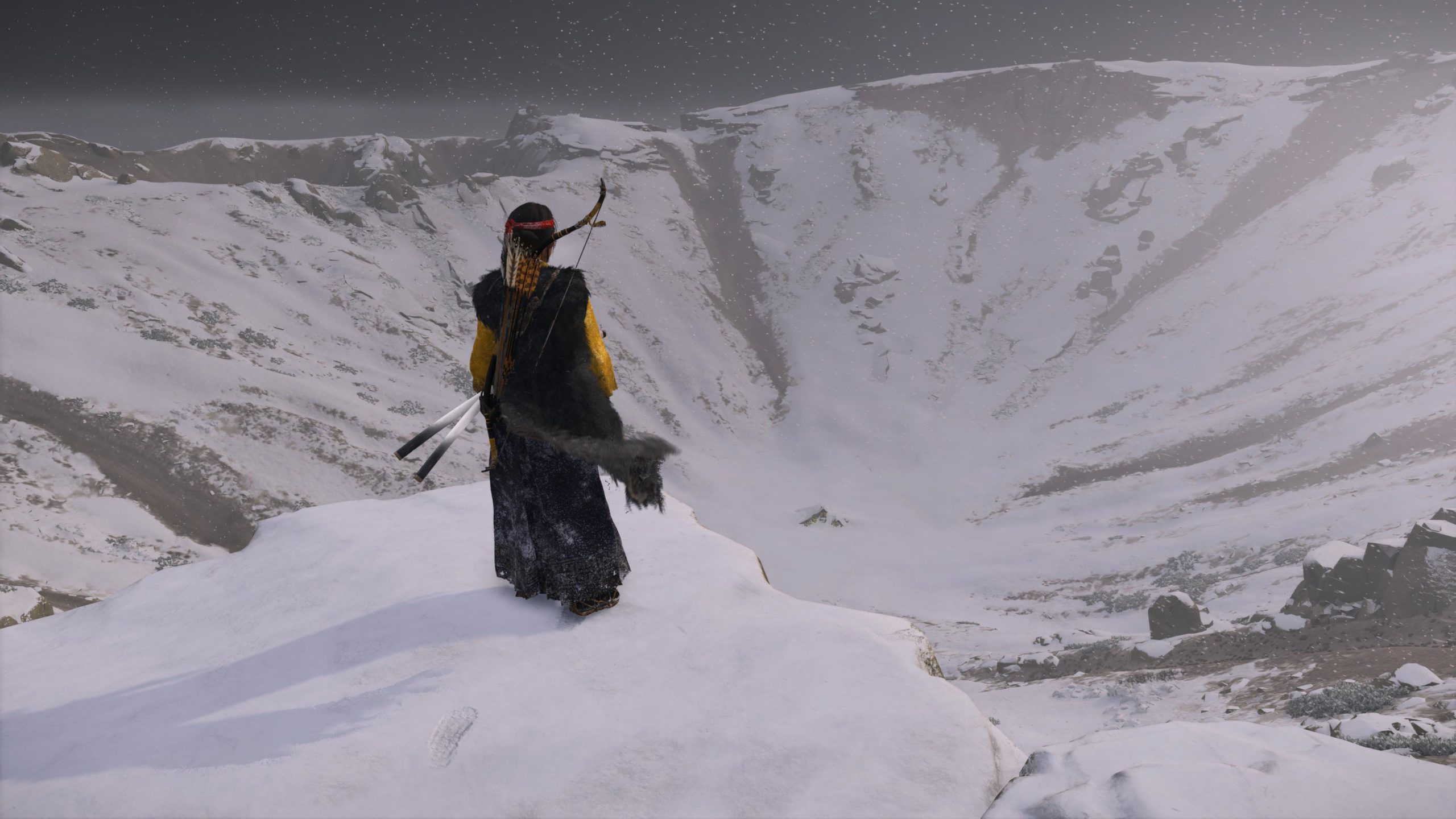 Ghost of Yōtei est une suite assez sage somme-toute. Le jeu et les développeurs de chez Sucker Punch ne prennent pas trop de risque à changer la formule gagnante de Tsushima. Si on a fait le premier ainsi que le dlc ikishima, on sait où on met les pieds. Et c’est ce que l’on s’attend d’une suite quelque part. Il faut que la franchise évolue, mais aussi qu’elle respecte son origine. Et c’est ce que fait Ghost of Yōtei. Il propose un jeu très proche de son prédécesseur tout en améliorant certain aspect comme le combat qui est encore plus plaisant cette fois-ci. C’est pêchu, dynamique et hyper satisfaisant. Les bases ne sont pas très compliquées ni trop complexe pour offrir une expérience gratifiante et viscérale. Quel kif de trancher ses ennemis par centaines dans le jeu. Et les duels…quel pied. Ils sont nombreux et sans être trop difficiles, ils demandent un peu plus de skill. On ne s’en lasse pas. Non, le combat est encore une fois très réussi, très cinématographique et sublimé par les nombreuses animations. Avec les nombreuses armes à disposition, les combats sont plutôt variés et apporte des changements de rythmes et beaucoup d’opportunité pour prendre la tête de ses ennemis. Ensuite un autre très gros point fort du jeu, c’est la map. Ezo (Hokkaido) est hyper varié et toujours en mouvement. Et il reste beaucoup d’endroit non visité. Peut-être pour de futur dlc. C’est vivant et rempli de point d’intérêt en tout genre. Alors ils sont nombreux, mais c’est toujours un peu les mêmes comme dans Tsushima. Les environnements sont magnifiques. Souvent on s’arrête pour juste regarder et contempler. C’est un jeu souvent très contemplatif. Il faut dire que graphiquement et techniquement c’est grandiose. C’est très semblable, encore un fois, à Tsushima, mais en mieux. C’est plus beau, plus fin, plus dense et plus varié encore. C’est mieux designé d’un bout à l’autre. Il manque juste l’effet de surprise qu’avait le premier, mais ça on ne peut pas y faire grand-chose.