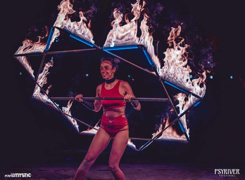 Avec un line-up mêlant artistes suisses et internationaux de haut niveau, la programmation du PsyRiver 2025 a tenu toutes ses promesses. Chaque journée a dévoilé son lot de pépites, sublimées par une qualité sonore impeccable et une scène à la hauteur des plus grands festivals. En soirée, les spectacles de feu ont ajouté une touche magique, réchauffant encore un peu plus l’ambiance déjà brûlante du dancefloor. L’espace de danse, parfaitement calibré sous la canopée, offrait des conditions idéales pour savourer chaque set. Le choix artistique reposait sur une progression intelligente et immersive : une ouverture tout en douceur le vendredi, un samedi en pleine ascension avec des BPM qui s’emballent pour atteindre le pic d’intensité du week-end, puis un dimanche plus aérien, apaisant et mélodique. Un véritable voyage sonore, minutieusement construit, qui a emporté le public du premier au dernier jour. En point d’orgue, le final en apothéose avec Phaxe, figure incontournable de la melodic psytrance, dont les sonorités planantes et lumineuses se fondaient parfaitement dans l’atmosphère unique du site — un véritable moment suspendu dans le temps.