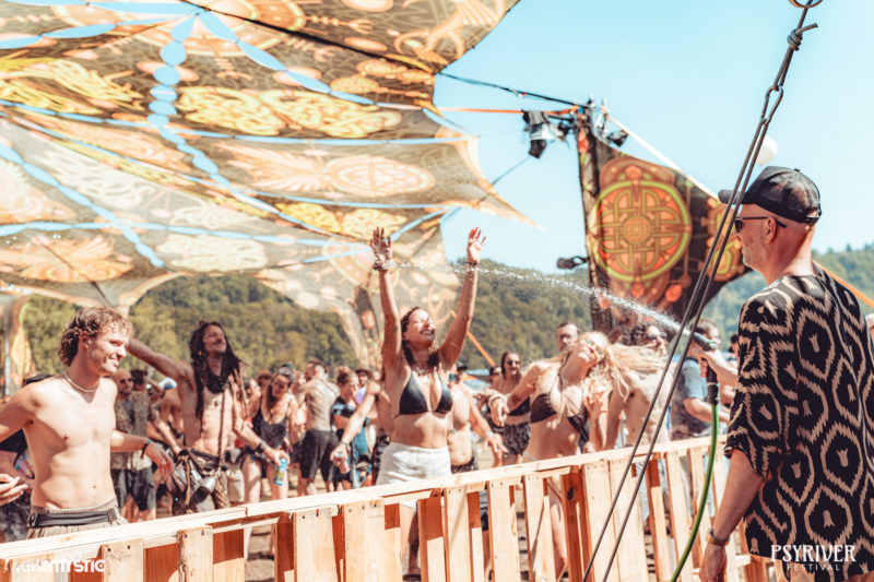 La taille du festival – environ 1 000 personnes par jour – favorise cette proximité et ces détails qui font toute la différence. Mais au-delà de la logistique, c’est surtout la volonté des organisateurs d’offrir une expérience magique qui marque les esprits. Leur désir de bien faire, leur générosité et leur énergie positive se ressentent partout : sanitaires impeccables, scène à la fois intimiste et de grande qualité, brumisateurs actifs aux heures les plus chaudes, arrosages au jet d’eau pour rafraîchir les danseurs, distribution de fruits dans le public… Au PsyRiver, tout est pensé pour partager de la joie et de l’amour, et cela se reflète directement dans l’ambiance : un public bienveillant, détendu, porté par un sentiment de qualité constante. Un véritable havre de paix