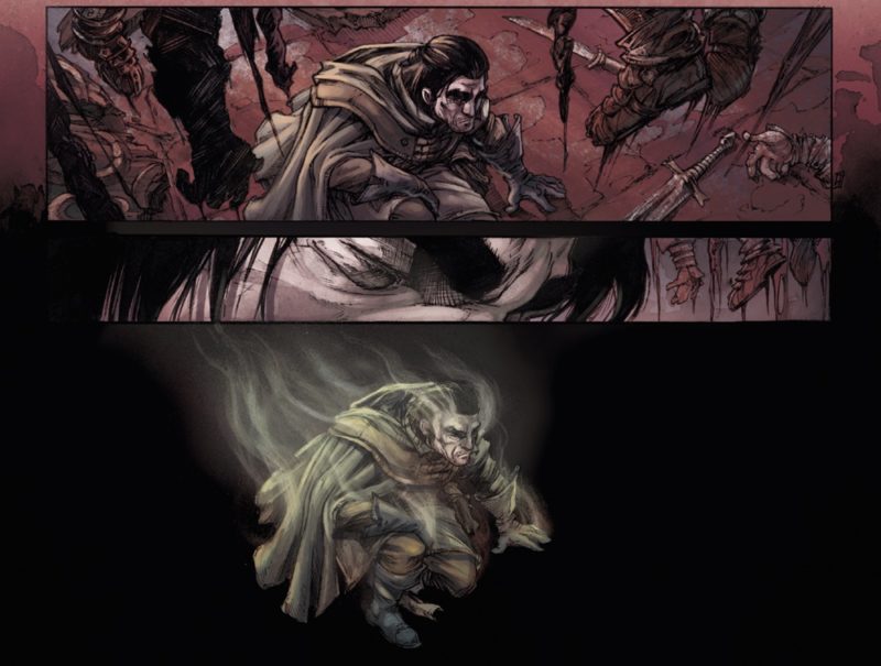 A ses côtés nous trouvons l’illustrateur Pierre-Denis Goux. L’adaptation cinématographique de l’œuvre de Tolkien « Le Seigneur des Anneaux » a contribué à rapprocher le dessinateur de l’univers de la fantasy. Passionné par la bande dessinée depuis toujours, Pierre-Denis a été formé à l’école Pivaut de Nantes, en section illustration. Il a signé par la suite, son premier album chez Soleil avec Mérlin le Prophète. On le retrouve également au dessin de Mjöllnir et en 2015, est paru le premier tome de Nains. En 2024, le dessinateur français a publié son premier roman graphique : Fidji : l’histoire de deux amis qui partent en virée, une métaphore de la vie et de ses épreuves.