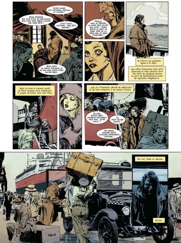 Les combats de ce Tarzan revisité sont nombreux, les bêtes sont féroces et les régions inhospitalières qu’il traverse ne lui laissent aucun répit. De nouvelles peuplades font leur apparition dans ce nouveau tome et le héros (qui s’est fait un groupe d’amis fidèles) progresse au niveau sentimental comme culturel. On le trouve, dès lors aussi bien dans les salons parisiens à faire le joli cœur qu’au Pôle Nord dans une machine révolutionnaire.